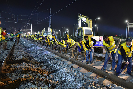 “22日20時40分至23日5時40分、24日22時至25日7時正式進行京唐鐵路與(yu) 京哈鐵路上下行42號道岔整體(ti) 橫移插入施工,並取得圓滿成功。”中國鐵路北京局集團有限公司所屬唐山工務段副段長王建介紹說,自3月15日以來,為(wei) 嚴(yan) 格落實沿線疫情防控政策,該段組織相關(guan) 科室、車間20餘(yu) 名幹部職工吃住在現場,對兩(liang) 組道岔預鋪平台搭設、預鋪組織、線下焊軌、探傷(shang) 、標誌標識油刷、放散、精調等進行全程技術指導,全力確保岔位和平縱斷麵上線零誤差。