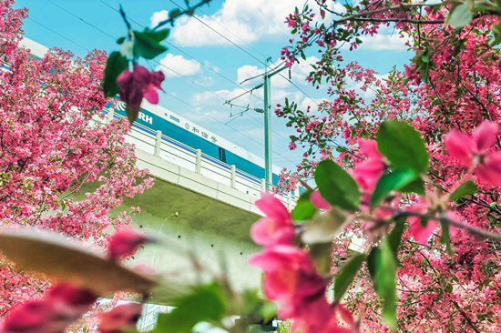 崔莊鎮域內(nei) 高鐵沿線海棠花盛開。 馬劭文攝