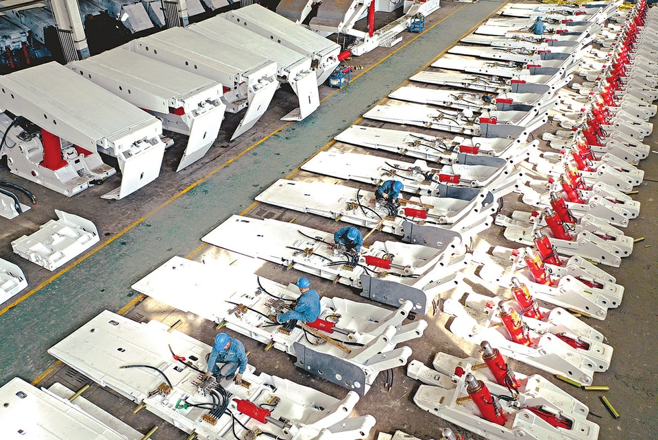 4月24日,在晉能控股裝備製造集團華越公司生產(chan) 車間,該公司承接的四川樂(le) 山和邦集團的液壓支架產(chan) 品正在緊張組裝。今年以來,該公司大力開拓省外市場、做優(you) 做強,提升產(chan) 品市場影響力,全方位推動企業(ye) 高質量發展。(記者劉通攝)