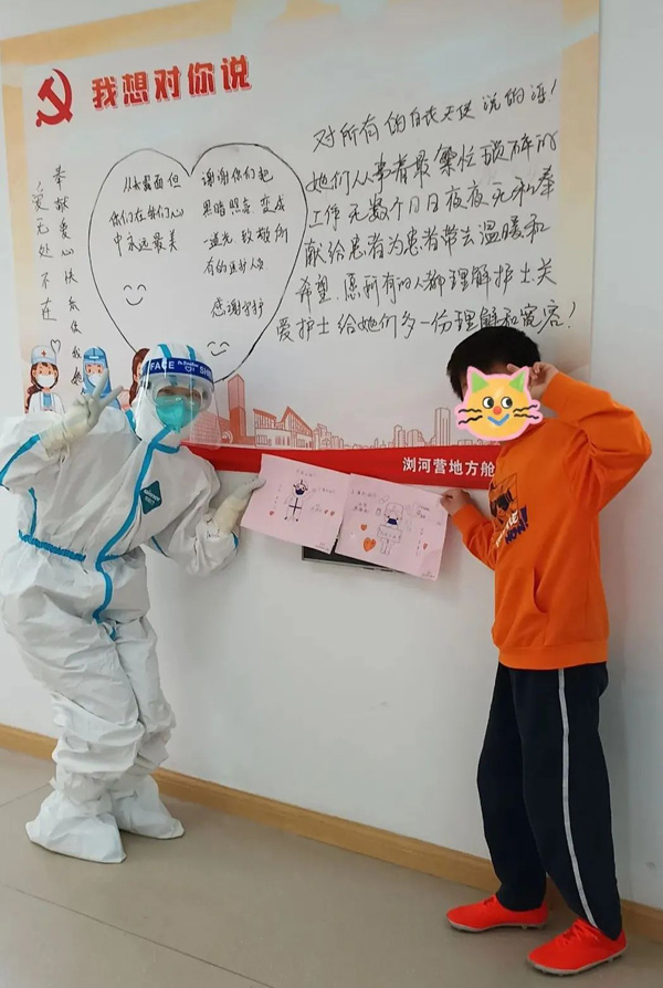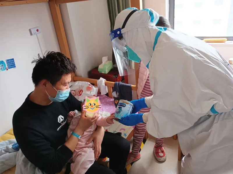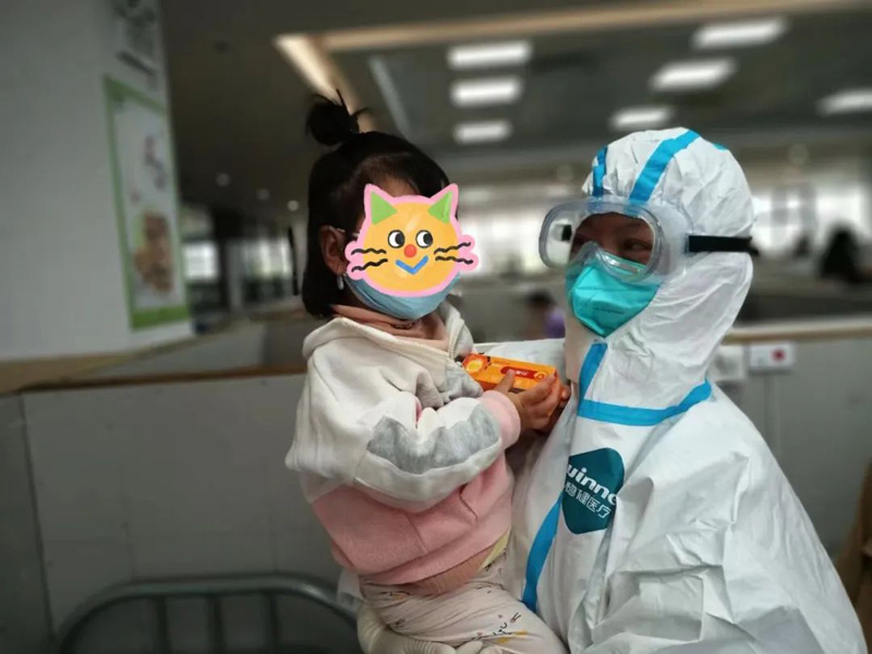 低齡患兒(er) 需要奶粉和尿不濕,有的家庭來方艙前帶的不多,“大白”們(men) 還專(zhuan) 門籌集了一批母嬰用品給他們(men) 。“對患兒(er) 來說,加強心理疏導和陪伴是很重要的,如果患兒(er) 是陽性,陪護人員是陰性的話,隻要簽署承諾書(shu) ,就可以進親(qin) 子艙陪護,解決(jue) 患兒(er) 分離焦慮。”俞林桂介紹道。