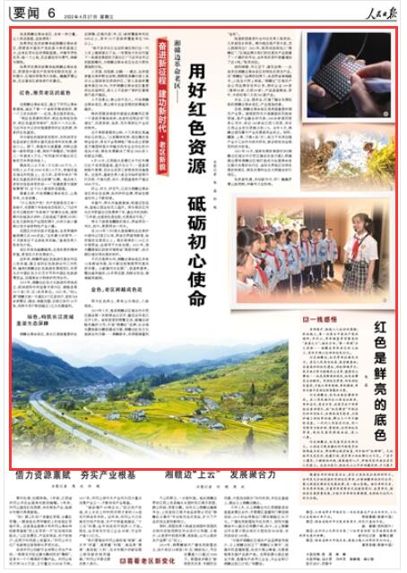 在湘贛邊革命老區,建立了井岡(gang) 山革命根據地,誕生了第一個(ge) 省級蘇維埃政權、第一個(ge) 工農(nong) 兵政府……紅色,是這裏的底色。