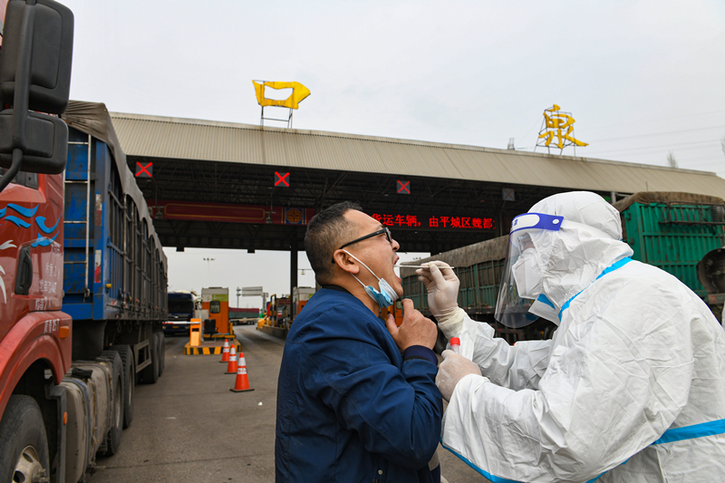 高速路口,保證物資流通的同時,落實防疫要求,做到應檢盡檢,不漏一人一車。張占兵 攝