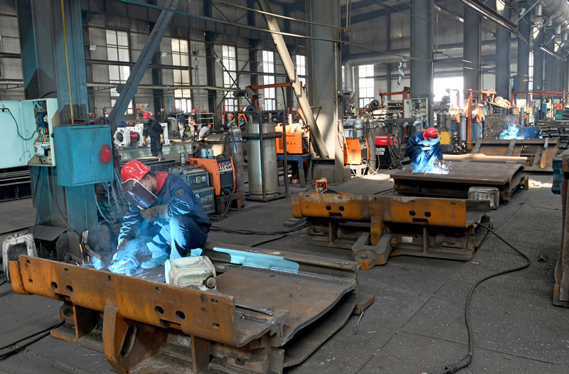 4月16日,大同市同華礦機製造有限責任公司生產(chan) 車間一景。大同市對各生產(chan) 企業(ye) 工作人員進行閉環管理,做到疫情期間不停工。李冬賓 攝