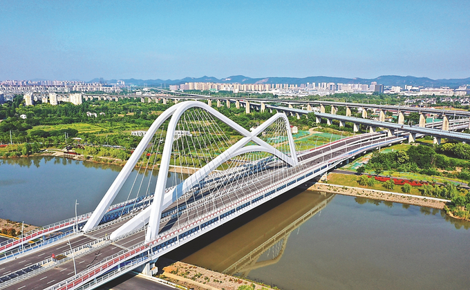 外觀猶如巨型“蝴蝶結”的南京秦淮灣大橋,目前已進入竣工驗收階段,預計將於(yu) 9月正式投用。大橋連接南京繞城高速和南部新城,為(wei) 市民前往南部新城提供更便捷的路線。 通訊員 李琦 本報記者 趙亞(ya) 玲 攝