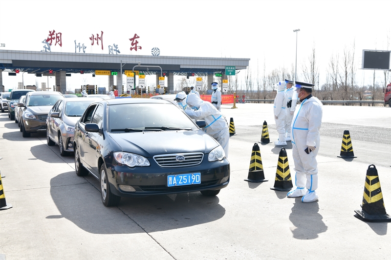朔州東(dong) 高速口,疫情防控人員查驗過往車輛健康碼、行程碼。高文武 攝