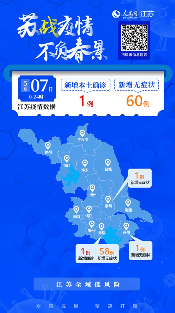 5月7日江蘇新增1例本土確診病例 60例本土無症狀感染者