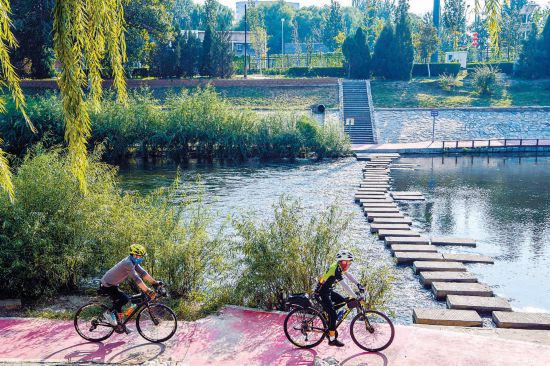 改造後的涼水河豐(feng) 台段沿岸綠化與(yu) 慢行係統融合,為(wei) 市民休閑騎行增添更多樣的景觀體(ti) 驗。 本報記者 鄧偉(wei) 攝