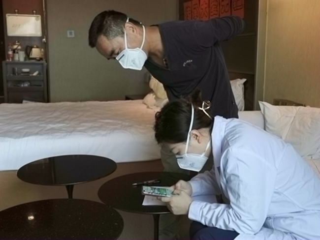 5月4日晚6點多,從(cong) 香港求醫歸來的張氏夫婦懷抱著精神萎靡的哼哼,由機場大巴閉環轉運至海澱區紅杉集中醫學隔離觀察點,晚上8點半,到達酒店辦理入住。來自四季青醫院的張龍珍負責接待工作,豐(feng) 富的工作經驗讓她第一時間注意到了被母親(qin) 抱在懷中的哼哼,臉有一些不正常的浮腫,便上前詢問情況,得知他患有神經母細胞瘤並轉移至腦部及全身時,張龍珍便親(qin) 自照顧起了這一家人,一步一步指導哼哼爸爸掃碼,填寫(xie) 個(ge) 人信息,並在前台開放綠色通道,快速為(wei) 他們(men) 辦理入住。