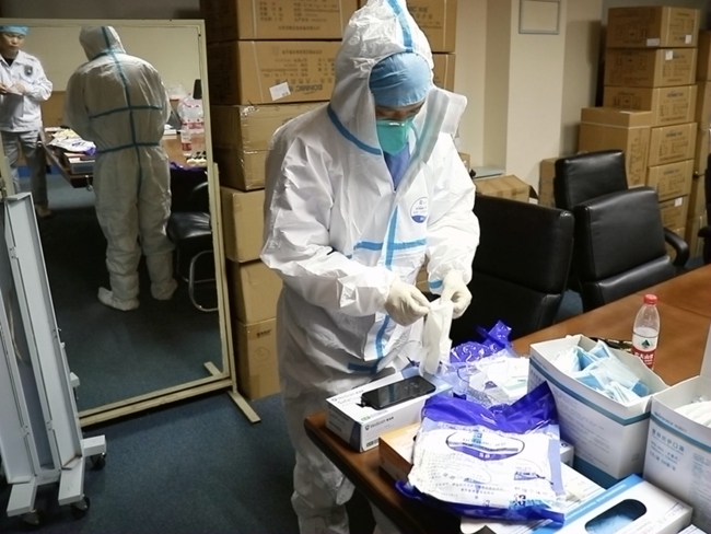 “有時候真的感覺很累,再加上穿的這些防護服也會(hui) 缺氧,視線模糊。眼睛都是花的,但還是堅持吧,盡可能地調節一下自己。其實也沒什麽(me) 。”醫護人員說道。