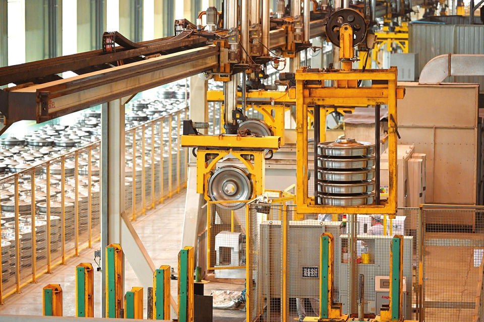 5月10日,太重軌道公司輪對生產(chan) 車間檢測線上,工作人員正在對即將出廠的高鐵鋼輪進行檢驗。該公司將精益管理和改革創新當做抓好各項工作任務的關(guan) 鍵,深耕國際國內(nei) 市場,積極推進海外項目合作,穩固國內(nei) 傳(chuan) 統市場行業(ye) ,打破傳(chuan) 統營銷方式,積極培育新模式、新業(ye) 態,不斷加強核心技術攻關(guan) ,拓展新的產(chan) 品市場。(記者李兆民攝)