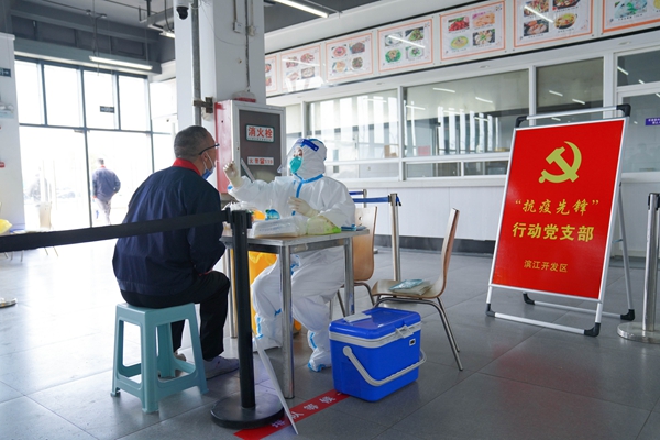核酸檢測團隊走進製造業(ye) 企業(ye) 。濱江開發區供圖