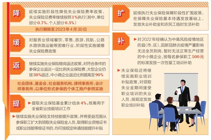 5月16日,記者從(cong) 省人社廳獲悉,省人社廳、省財政廳、省稅務局日前聯合印發《關(guan) 於(yu) 轉發〈人力資源社會(hui) 保障部〉的通知》,進一步明確我省部分失業(ye) 保險穩崗位提技能防失業(ye) 政策,要求各地確保援企惠民政策措施落地見效,助力企業(ye) 紓困解難,為(wei) 參保人員提供保障,有效確保企業(ye) 和參保人員及時享受政策紅利。