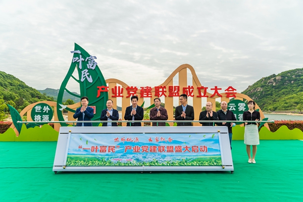 連雲(yun) 區“一葉富民”茶產(chan) 業(ye) 黨(dang) 建聯盟盛大啟動。連雲(yun) 區委宣傳(chuan) 部供圖