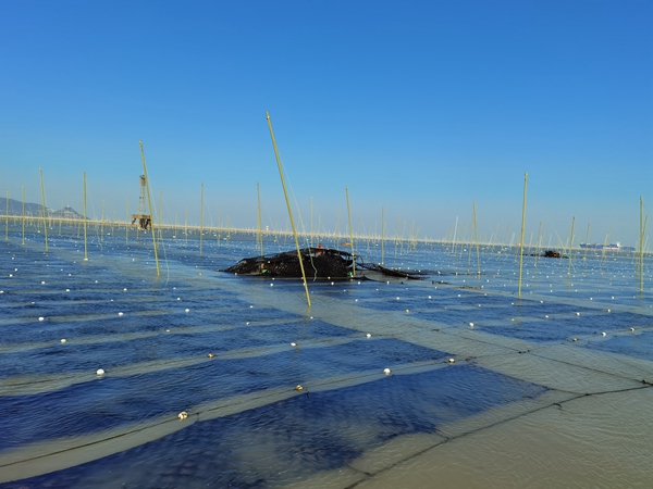 探索三倍體(ti) 牡蠣高效籠養(yang) ,“海上田園”增收覓新路。朱華南攝