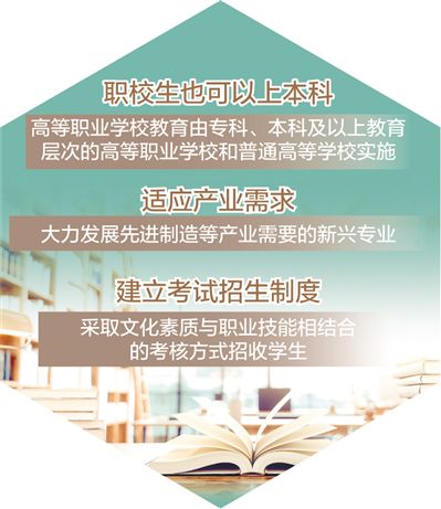 2019年以來,教育部批準設置了32所職業(ye) 本科學校,打破了職業(ye) 教育止步於(yu) 專(zhuan) 科層次的“天花板”。“下一步,我們(men) 要繼續支持一批優(you) 質的高職專(zhuan) 科學校獨立升格為(wei) 職業(ye) 本科學校,指導符合條件的高職專(zhuan) 科學校舉(ju) 辦本科層次的職業(ye) 教育。”教育部職業(ye) 教育與(yu) 成人教育司司長陳子季表示。