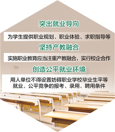 “職業(ye) 教育是與(yu) 普通教育具有同等重要地位的教育類型,是國民教育體(ti) 係和人力資源開發的重要組成部分”,新修訂的職業(ye) 教育法開宗明義(yi) ,作出重要判斷——職業(ye) 教育是“類型”教育,不是“層次”教育。類型教育的明確定位如同一根紅線,串起職業(ye) 教育改革的方方麵麵,許多難題得以破解。