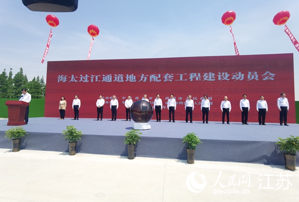 人民網南通5月18日電 (記者王繼亮)18日上午,海太過江通道地方配套工程建設動員大會(hui) 在南通海門區召開,標誌著此項目正式轉入施工籌備階段。南通市委書(shu) 記、市人大常委會(hui) 主任王暉宣布項目開工,江蘇省交通運輸廳廳長吳永宏,蘇州市副市長施嘉泓,南通市委副書(shu) 記、市長吳新明等到會(hui) 並致辭。