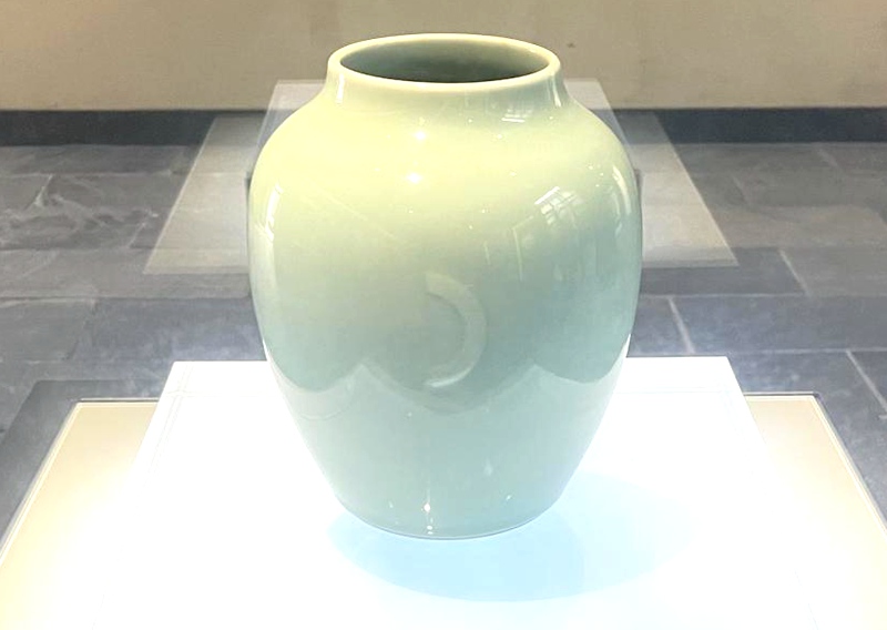 清乾隆豆青釉月牙罐。鬆陽縣茶葉博物館供圖