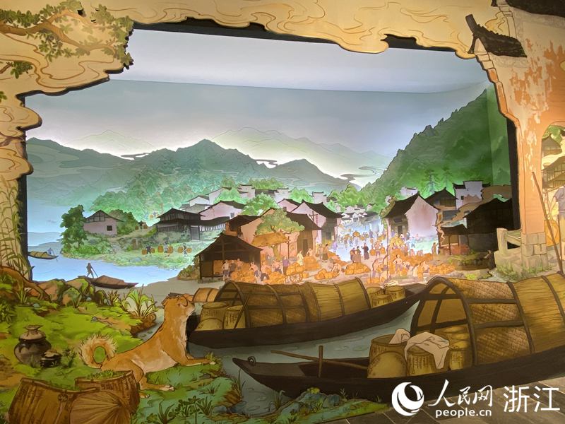 “茶之道”展廳生動還原了古代鬆陽縣集市交易的繁榮盛況。人民網 方彭依夢攝