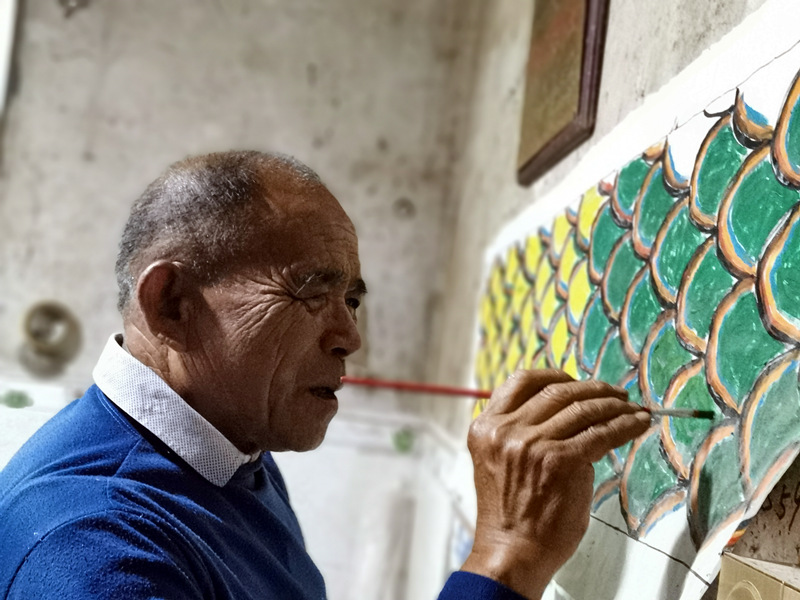 上完課,跟隨羅德書(shu) 來到他的家裏。隻見畫好龍麒麟的油紙被當成裝飾品掛在牆上,雨壇彩龍的半成品隨處可見。