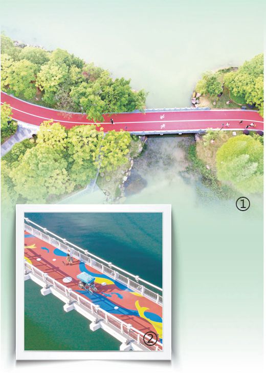 圖①:江西省贛州市章貢區一處濕地公園內(nei) 的健身步道。
