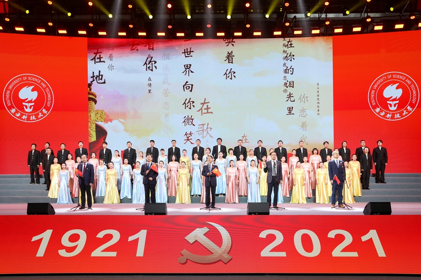 南科大校長薛其坤與(yu) 院士代表、師生代表齊唱《共和國之戀》。南科大供圖