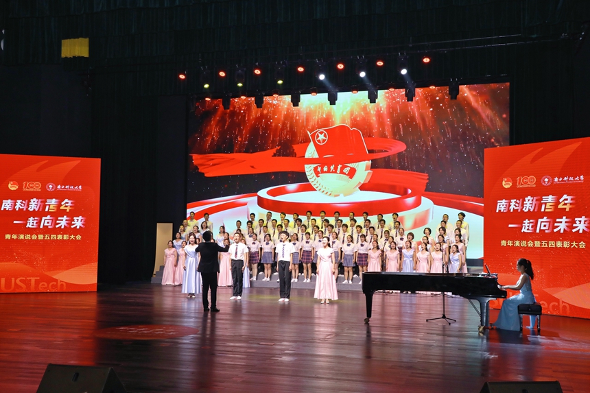 “南科新青年·一起向未來”青年演說會(hui) 現場合唱。南科大供圖