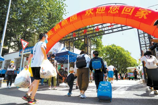 28日,朝陽區南新園小區近5000名居民結束集中隔離後開始陸續分批回家。 本報記者 程功攝