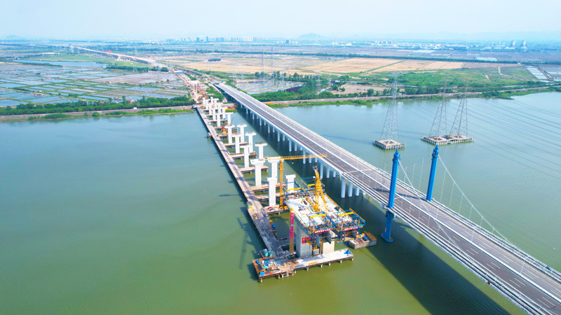 浙江杭紹甬高速杭紹段曹娥江特大橋墩柱全部澆築完成