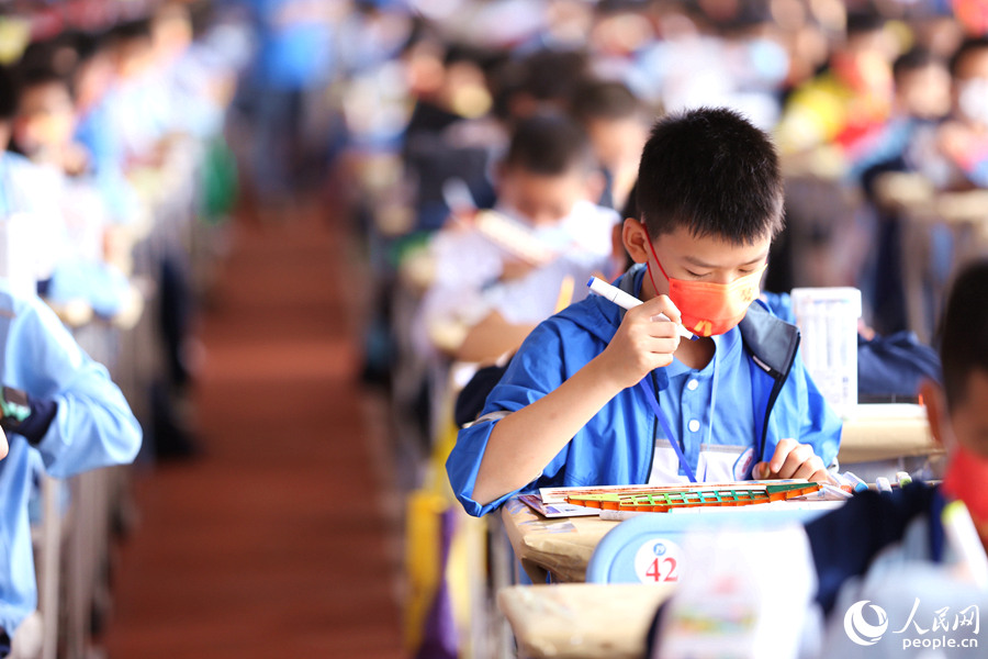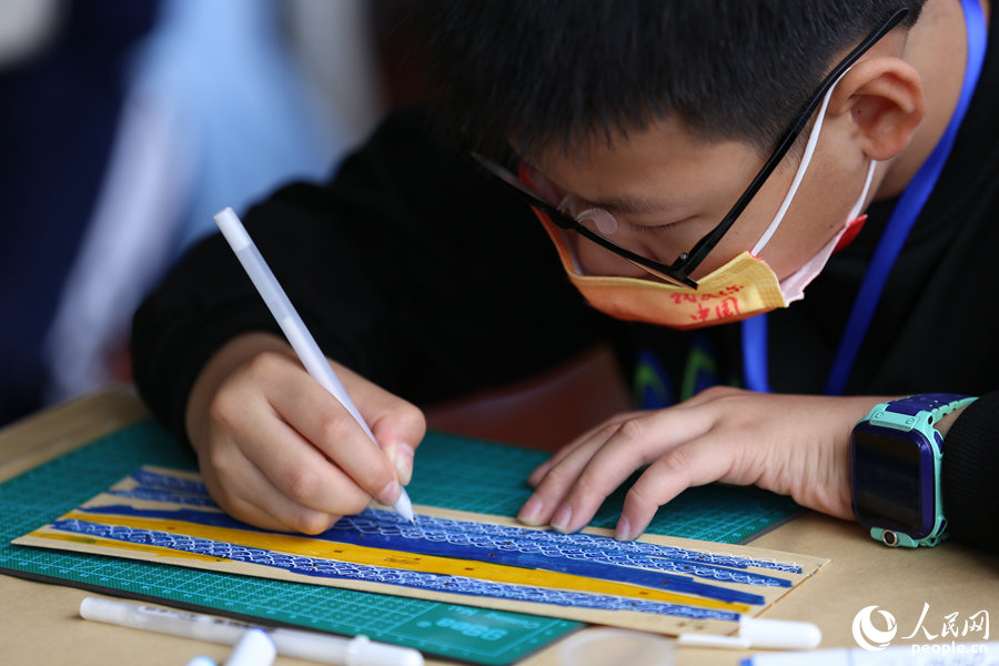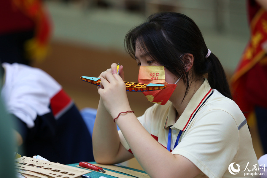 活動現場,選手們(men) 列隊進入各自賽場,用畫筆在龍舟模型素材板上畫出各式圖案,再將一個(ge) 個(ge) 零部件手工拚接,組裝成一條條獨具特色的“小龍舟”,船體(ti) 或是金銀鱗甲,或是祥雲(yun) 波浪,色彩斑斕,風格不一。
