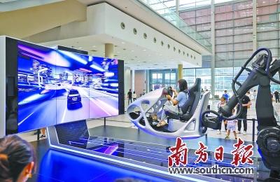 車展上,市民在體(ti) 驗駕駛模擬器,享受駕駛樂(le) 趣。南方日報記者 魯力 攝