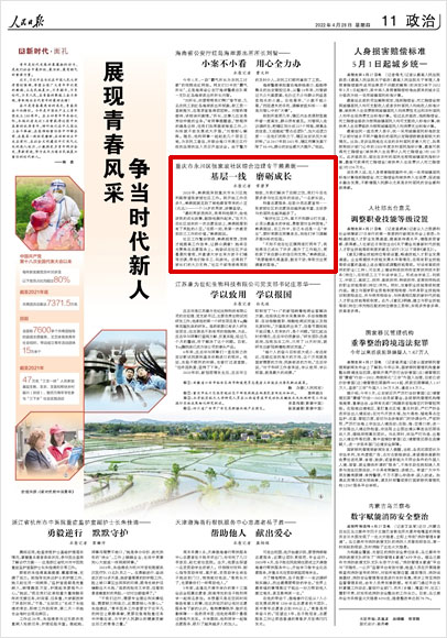 “不知不覺在社區摸爬滾打兩(liang) 年了,我覺得自己成長了許多,提升了工作能力,更收獲了來自群眾(zhong) 的信任和支持。”熊燕妮說,“我要繼續紮根基層,鼓足幹勁,爭(zheng) 取交出更滿意的答卷。”