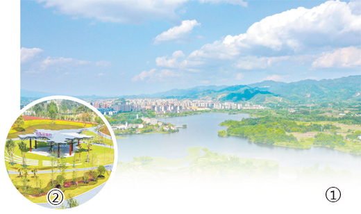 圖②:四川廣安市渠江紅灘音樂(le) 公園裏,綠道景色優(you) 美。