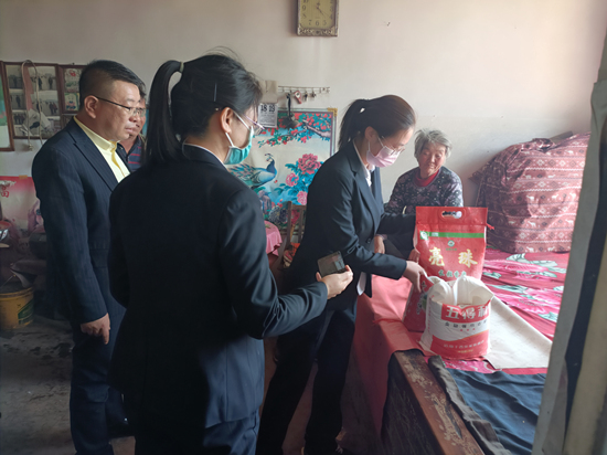 蔚縣國威大藥房開展愛心幫扶活動,為(wei) 桃花鎮謝家廟村生活困難老人送去米、麵、油等生活用品。 蔚縣縣委組織部供圖