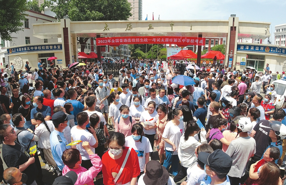 6月7日,太原五中考點,結束語文考試的考生們(men) 走出考場。記者李兆民攝