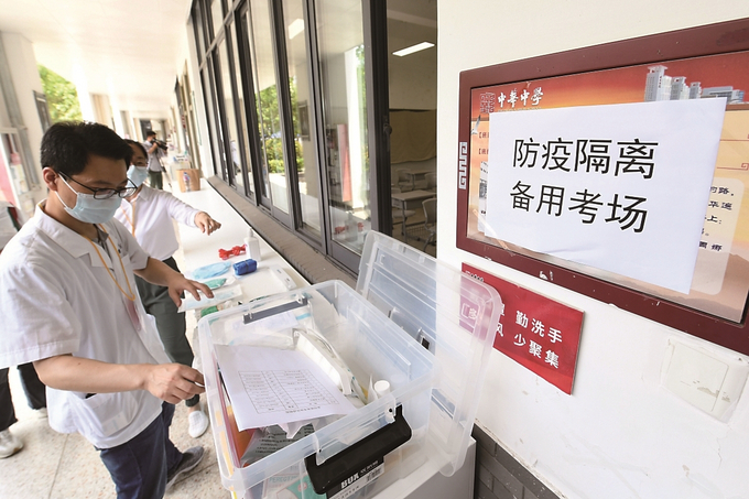 南京市中華中學考點備齊防疫物資,保障平安高考。 本報記者 萬(wan) 程鵬 攝