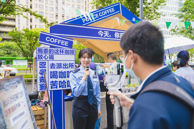 同時,隨著“坐在警務站裏喝咖啡”話題持續火爆,公安民警將踐行“三能”要求與(yu) 參與(yu) 創意市集相結合,創新推出了“蜀黍請你喝咖啡 反詐知識帶回家”快閃活動,以更有活力、更接地氣、更潮流入時的方式,讓年輕群眾(zhong) 在學習(xi) 知識的過程中,還能品嚐到香醇可口的咖啡。