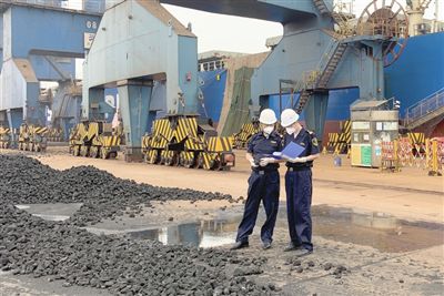 海關(guan) 關(guan) 員對焦炭進行現場監管。天津海關(guan) 供圖