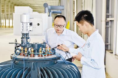 圖為(wei) 京津冀再製造產(chan) 業(ye) 技術研究院工作人員正在研究再製造技術。 河間經濟開發區管委會(hui) 供圖