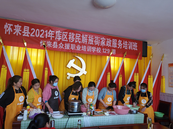 懷來縣眾(zhong) 援職業(ye) 培訓學校對新保安鎮解放街村部分婦女進行中式麵點專(zhuan) 業(ye) 培訓。 懷來縣委組織部供圖