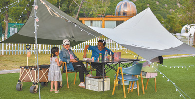 “三五好友結伴而行,喝茶賞景,好不愜意。”程曉說,“現在市場上有很多比較成熟的露營產(chan) 品可選擇,有的隻提供帳篷等設備,需要自備餐食,有的是全包,吃住遊所需都準備好了,還有些個(ge) 性化的產(chan) 品會(hui) 提供桌遊、羽毛球等休閑項目。”在體(ti) 驗過幾次露營後,程曉正打算帶上父母一起戶外郊遊。