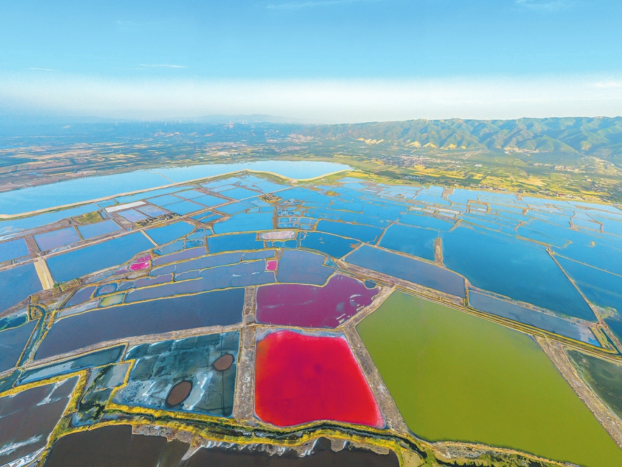 仲夏時節,隨著氣溫升高,運城鹽湖濕地呈現出色彩斑斕的美麗(li) 景觀。近年來,運城市大力實施“退鹽還湖”“還湖於(yu) 民”生態修複工程,把鹽湖從(cong) 礦區、工業(ye) 區變為(wei) 生態保護區、旅遊區。(閆鑫攝)
