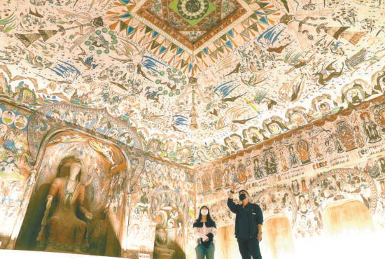 在中心下沉廣場的34、35號展廳內(nei) ,陳列了來自敦煌研究院的近50件(套)文物數字化研究成果。展品包括複製彩塑6身,高保真數字化壁畫複製品25幅,還有仿製樂(le) 器5件,輔助展品10餘(yu) 件,如張騫出使西域圖、五台山圖、九色鹿、反彈琵琶、158窟涅槃像等敦煌莫高窟最著名的壁畫及彩塑代表。“同時還等比例複製了敦煌莫高窟的第3窟、第285窟,這兩(liang) 個(ge) 洞窟如今已不對外開放。”展覽負責人唐麗(li) 介紹,為(wei) 方便市民觀展,每天上下午各有兩(liang) 場講解,講解時長為(wei) 1小時20分鍾,推薦在票務平台提前購票後,提前預約進場。6歲以下兒(er) 童免票,6至18歲在校學生及老人可享受優(you) 惠票價(jia) 。