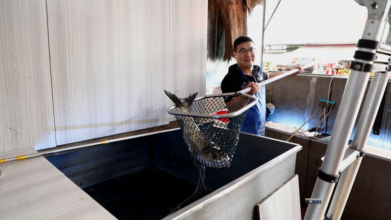 林加昌是文成人,從(cong) 事水產(chan) 行業(ye) 多年的他,在知道水庫放出特許經營許可證後便去招投標,第一眼便相中了珊溪水庫的有機包頭(鱅)魚,這一做就是三年。他說,現在門店一天能出售100斤魚,不光是文成,像溫州平陽、金華義(yi) 烏(wu) 、上海等縣外的訂單也很多,品質好,訂單就絡繹不絕。