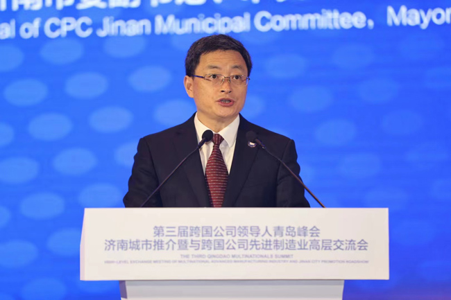人民網青島6月20日電 6月20日上午,第三屆跨國公司領導人青島峰會(hui) 舉(ju) 辦期間,濟南市舉(ju) 辦城市推介暨與(yu) 跨國公司先進製造業(ye) 高層交流會(hui) 。近100家世界500強、跨國公司、知名企業(ye) 、商協會(hui) 機構及駐濟重點企業(ye) 的150餘(yu) 名嘉賓齊聚一堂,共商合作,共謀發展。山東(dong) 省委常委、市委書(shu) 記劉強出席,市委副書(shu) 記、市長於(yu) 海田出席並致辭。