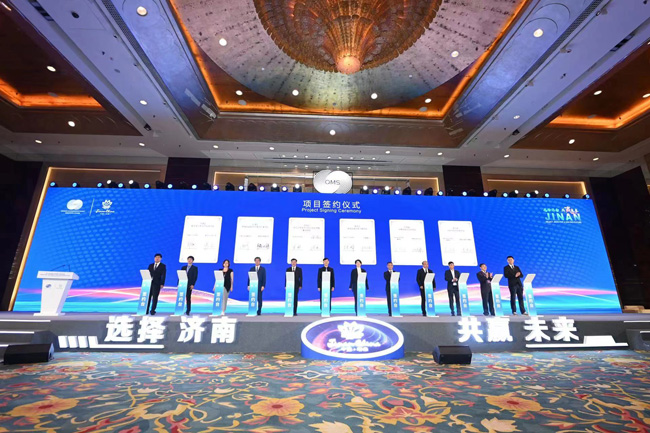 本次峰會(hui) 期間,濟南市共有19個(ge) 項目簽約。其中,在省主會(hui) 場共簽約7個(ge) 項目,項目總投資額約9.71億(yi) 美元,合同外資2.78億(yi) 美元,涉及新材料、新能源、新一代信息技術等領域。在濟南城市推介活動現場,共簽約12個(ge) 項目,總投資額約8.54億(yi) 美元,合同外資3.85億(yi) 美元,涉及高端裝備製造、現代農(nong) 業(ye) 、新能源、類金融等領域,其中製造業(ye) 類項目7個(ge) 。