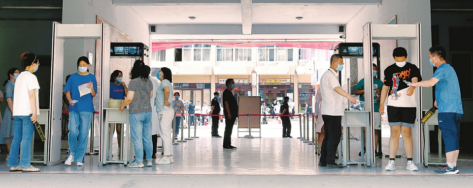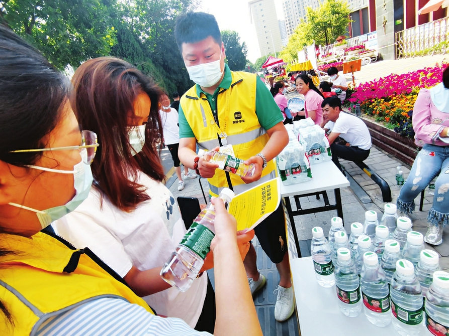 6月20日,太原市交通運輸綜合行政執法隊在太原二十七中考點規範周邊環境,為(wei) 考生及家長提供免費騎行服務,並提供礦泉水和休息處。(圖由孫榮祥 段賀鵬攝)