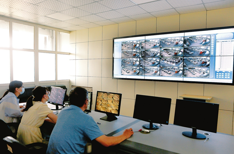 6月20日,晉城市鳳台中學考點,工作人員正通過監控查看考場情況。