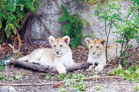 去年新生的兩(liang) 隻小獅子與(yu) 遊客見麵。