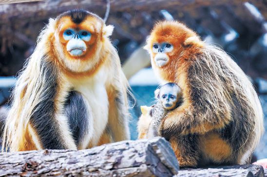 昨天,剛出生不久的川金絲(si) 猴寶寶和爸爸媽媽在一起。本報記者 鄧偉(wei) 攝